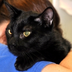 Crystal and Laser were rescued from a hoarder in June 2008, along with about two dozen other cats. They lived in awful conditions, were severely neglected, and were in much need of TLC. Some of the cats, including Crystal and Laser, were even stuffed in birdcages! Most of the cats were black and all of them were sick and had eye infections when rescued. Crystals eye infection was so severe that it left her with a cataract in one of her eyes. Shes not blind; her eyesight is just cloudy in that eye. Her cataract requires no special treatment and she leads a very normal life.