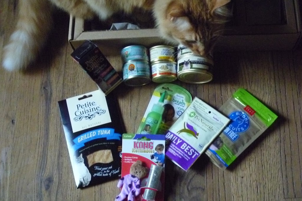 We had the opportunity to sample both the dog and cat versions of Pawalla’s offerings for the month. Inside each sturdy box was an array of wet food, treats, vitamins/supplements, toys and useful products suitable for the type of pet designated (as well as small vs large in size for dogs).